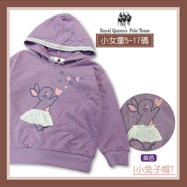 小女童長袖 兔兔愛心上衣 帽T 連帽 紫色 [95957] RQ POLO 小女童 秋冬童裝 5-17碼 現貨 過年