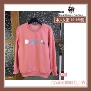中大女童 字母刺繡刷毛圓領上衣 西瓜紅 棉T 110-160碼 [31692] RQ POLO 秋冬童裝 T恤 保暖 過年