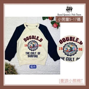 小男童薄長袖T恤 小熊衝浪圖案 藍色 寬版 [31476] RQ POLO 小童 秋冬童裝 5-17碼 台灣現貨
