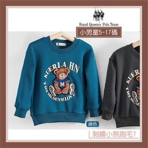 小男童 刺繡小熊 熊熊刷毛上衣 T恤 綠色 [96362] R.Q. POLO 小童 秋冬童裝 5-17碼 現貨 過年