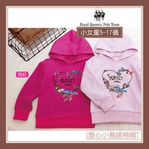 小女童長袖 愛心小鳥鋪棉上衣 帽T T恤 玫紅色 [10632] RQ POLO 小童 秋冬童裝 5-17碼 保暖 過年
