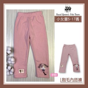 小女童長褲 刷毛內搭褲 小女孩圖案 芋粉色 [31342] R.Q. POLO 秋冬童裝 小童 5-17碼 保暖款
