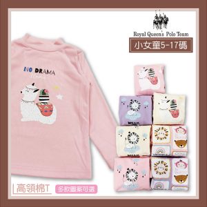 小女童長袖 套頭高領 動物T恤 羊駝 草泥馬 獅子 [31830/31832/31835] RQ POLO 德絨 秋冬童裝 5-17碼