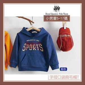 小男童 字母口袋刷毛帽T 上衣 T恤 藍色 [96356] R.Q. POLO 小童 秋冬童裝 5-17碼 現貨 保暖