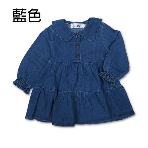 小女童長袖縮口牛仔裙 洋裝 領子 排扣 [95694] [62066] RQ POLO 小女童 秋冬童裝 5-17碼