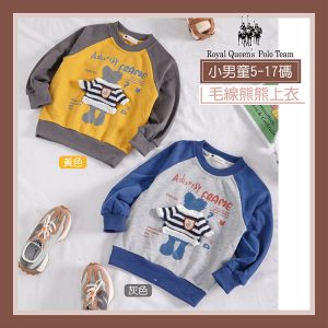 小男童長袖 毛線熊熊拼接圖案 圓領棉T恤 [96235] RQ POLO 秋冬童裝 5-17碼 現貨 過年