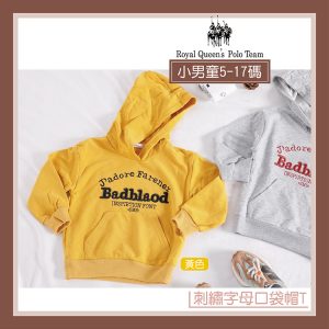 小男童長袖 刺繡字母口袋帽T 黃色 T恤 上衣 [96246] RQ POLO 秋冬童裝 5-17碼 現貨
