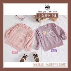 小女童長袖 毛線小花 荷葉邊造型 圓領上衣 T恤 [96268] RQ POLO 秋冬童裝 小童 5-17碼 荷葉領 過年