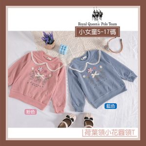 小女童長袖 小花圖案 荷葉領造型 圓領上衣 T恤 [96277] RQ POLO 秋冬童裝 小童 5-17碼 現貨 過年