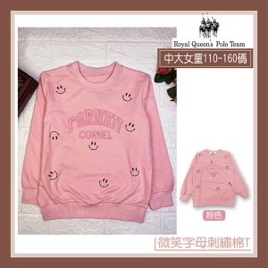 中大女童 微笑字母長袖棉T 縮口圓領 粉色 110-160 [31510] RQ POLO 秋冬童裝 T恤 兒童 現貨