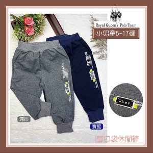 小男童 雙口袋百搭棉長褲 薄長褲 休閒褲 鬆緊褲頭 [31709] R.Q. POLO 小童 秋冬童裝 5-17碼 現貨