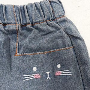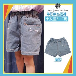 小女童 刺繡小貓咪牛仔軟布短褲 5-17碼 [30792] RQ POLO 兒童 春夏童裝 現貨 牛仔褲 牛仔短褲