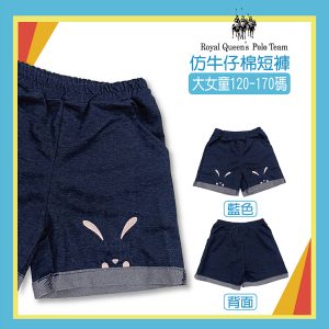 中大女童 小兔子仿牛仔休閒棉褲 120-170碼 [30720] RQ POLO 中大童 春夏童裝 現貨 棉短褲 運動褲