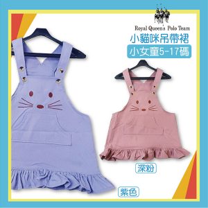 小女童 小貓咪口袋吊帶裙 荷葉裙襬 5-17碼 [31077] RQ POLO 兒童 春夏童裝 現貨