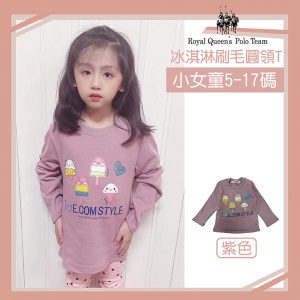 小女童 冰淇淋內刷毛圓領T恤 紫色 [16196] RQ POLO 小童 秋冬童裝 5-17碼 現貨 冬天必BUY