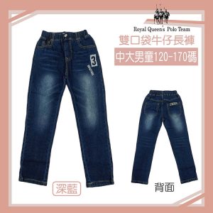 中大男童 雙口袋深藍牛仔工作褲 數字3刷白120-170碼 [21767] RQ POLO 中大童 秋冬童裝 現貨 長褲