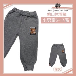 小男童 熊熊鋪棉雙口袋棉長褲 休閒褲 鬆緊褲頭 深灰 [21219] R.Q. POLO 小童 秋冬童裝 5-17碼 現貨