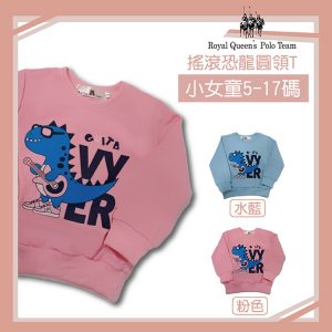 小女童長袖 搖滾恐龍圓領棉T恤 粉/水藍[21292] RQ POLO 小女童 秋冬童裝 5-17碼 現貨