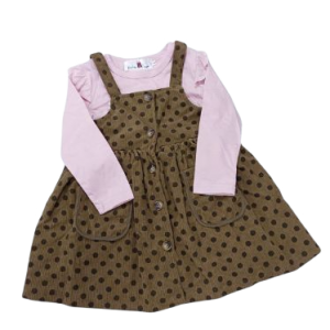 圓點雙口袋 咖啡色吊帶洋裝 長版 絨布[95960] R.Q. POLO 小女童 秋冬童裝 5-17碼 現貨 過年