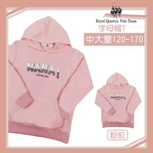 中大女童 字母NANA圓領縮口長袖帽T 粉色 [21319] RQ POLO 120-170碼 秋冬 童裝 現貨