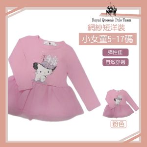 小女童 Kitty貓粉色網紗洋裝 長袖 [21449] RQ POLO 小童 秋冬童裝 5-17碼 現貨