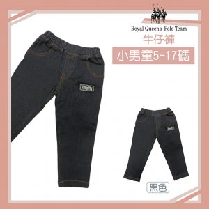 小男童 雙口袋 字母黑色牛仔長褲 鬆緊褲頭 [A21380] R.Q. POLO 小童 秋冬童裝 5-17碼 現貨