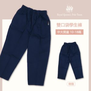 中大兒童深藍棉質學生褲 休閒褲 長褲 前後口袋 鬆緊褲頭 10-18碼 [9105] 畢業拍照 國中國小制服 男童 女童 RQ POLO 童裝 現貨