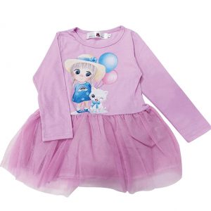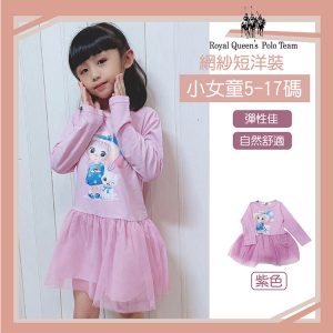 小女童貓咪氣球紫色網紗洋裝 長袖 [21452] RQ POLO 小童 秋冬童裝 5-17碼 現貨