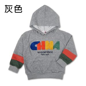 小男童長袖字母綠橘拼接口袋針織棉帽T CHNA 灰色 [95720]RQ POLO 兒童 秋冬童裝 5-17碼 現貨