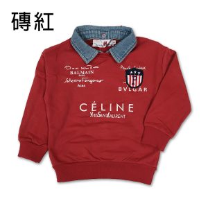 小男童磚紅假兩件可拆式牛仔領字母縮口棉T恤 [95737]RQ POLO 兒童 秋冬童裝 5-17碼 現貨