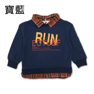 小男童寶藍假兩件可拆式格紋領字母縮口棉T恤 [98209]RQ POLO 兒童 秋冬童裝 5-17碼 現貨