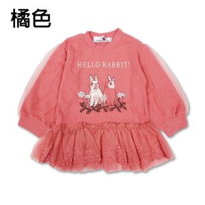 小女童網紗袖縮口兔兔針織棉洋裝 橘色 澎澎袖 [95680] RQ POLO 小女童 秋冬童裝 5-17碼 現貨