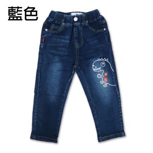 小男童恐龍刷白鬆緊牛仔褲 藍色 22-34碼 [10672]RQ POLO 秋冬童裝 兒童 現貨