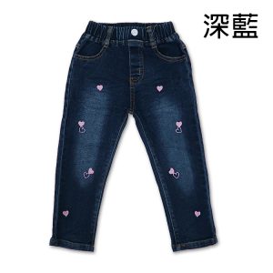 小女童愛心刷白鬆緊牛仔褲 深藍 5-17碼 [10668]RQ POLO 秋冬童裝 兒童 現貨