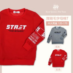 中大男童厚刷毛字母棉T STAT 花灰/紅色 120-170 [J8252] RQ POLO 秋冬童裝 T恤 兒童 現貨 過年