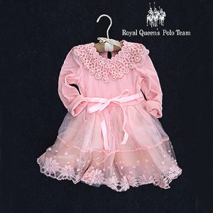 RQ POLO 小童秋冬款公主風珍珠網紗蕾絲洋裝[016009]