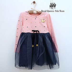 RQ POLO 小童公主風皇冠印花拼接網紗洋裝[88019]