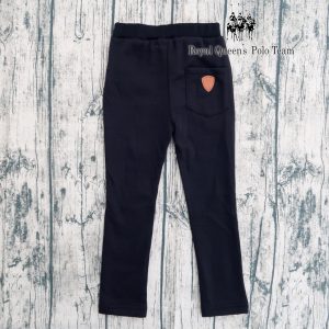 RQ POLO 小童黑色仿皮拼接不倒絨刷毛長褲[31394]