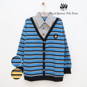 降價!RQ POLO 台灣製秋冬款中大童假兩件式彩色條紋POLO衫*2色 [9603]