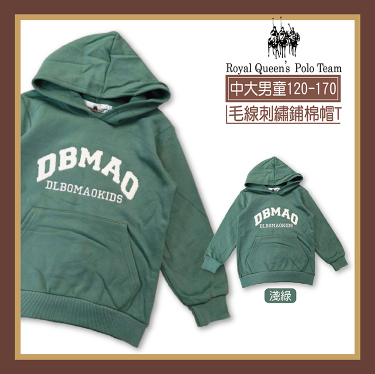 鋪棉*中大男童 毛線刺繡字母鋪棉連帽T恤 淺綠色 [51887] RQ POLO 秋冬童裝 中大童 120-170碼 刷毛 帽T - 1201 × NT$250