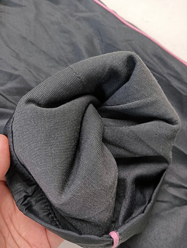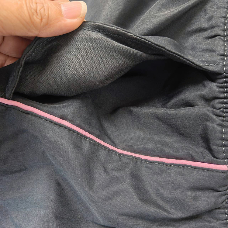 兩側皆有口袋,側邊有配色滾邊做裝飾,下方平口
