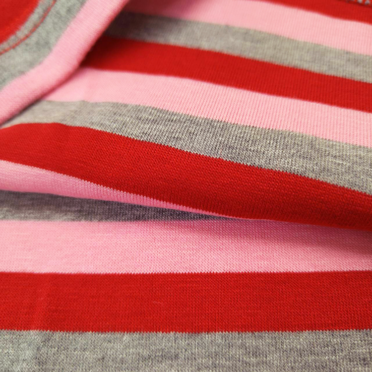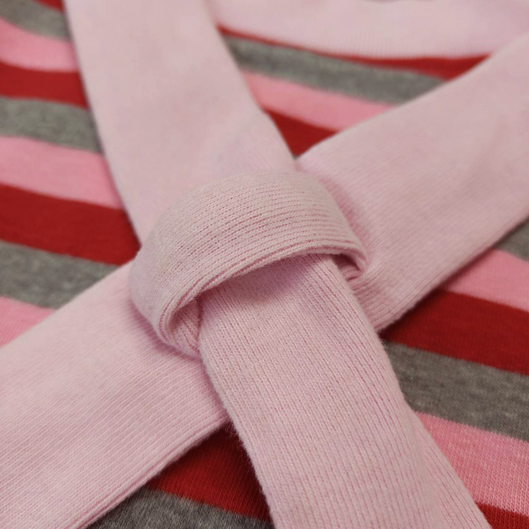 粉色交叉的線條領 拼接粉/紅/灰色條紋線衫,