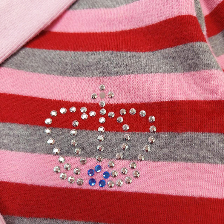 左胸前有皇冠圖案的貼鑽增添亮麗色彩,適合春秋之際穿著。